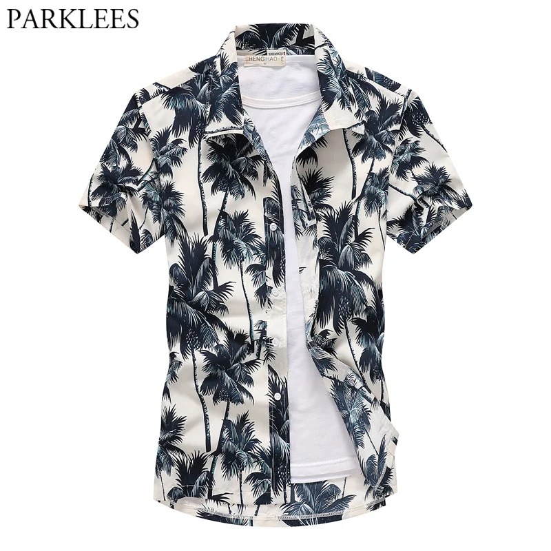 Blue Palm Tree Printed Beach Wear Shirt Men 2020 Summer Short Sleeve Men Hawaiian Shirt Casual Button Down Camisa Hawaiana 3xl Shirts Aliexpress